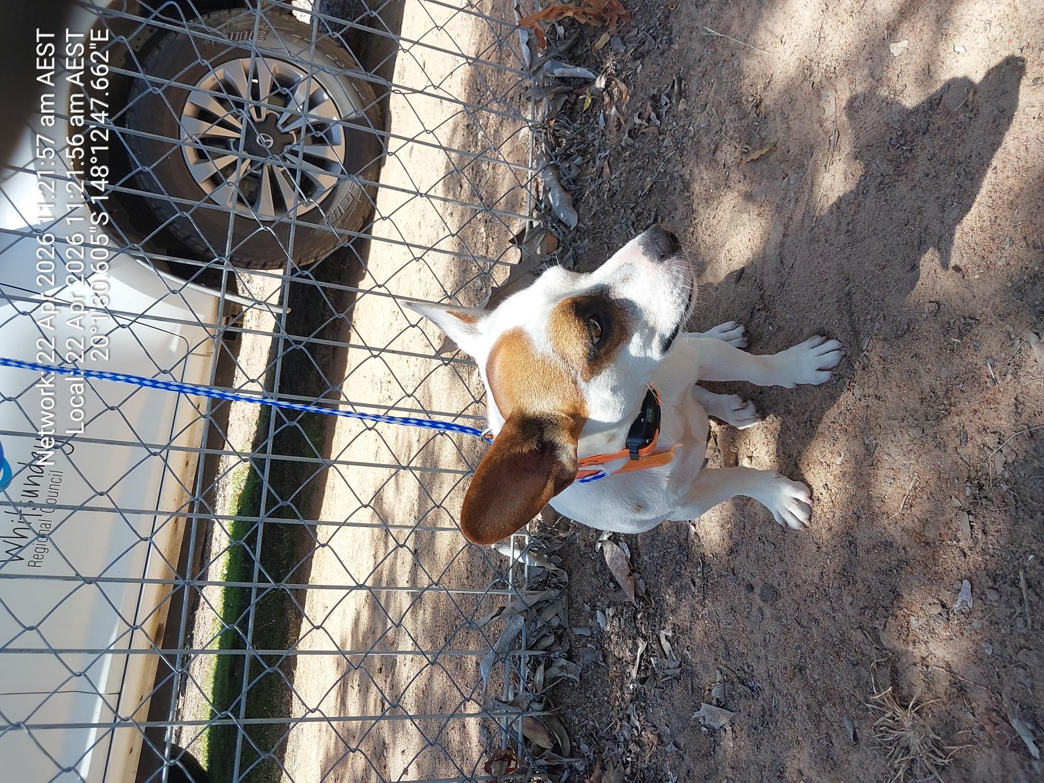 Terrier Cross Click to enlarge (JPG, 777KB) Found on 22 April 2026 Location Found : Bowen Breed : Terrier Cross Colour : White and Tan Sex : Male Desexed : No Tagged as: , Dog